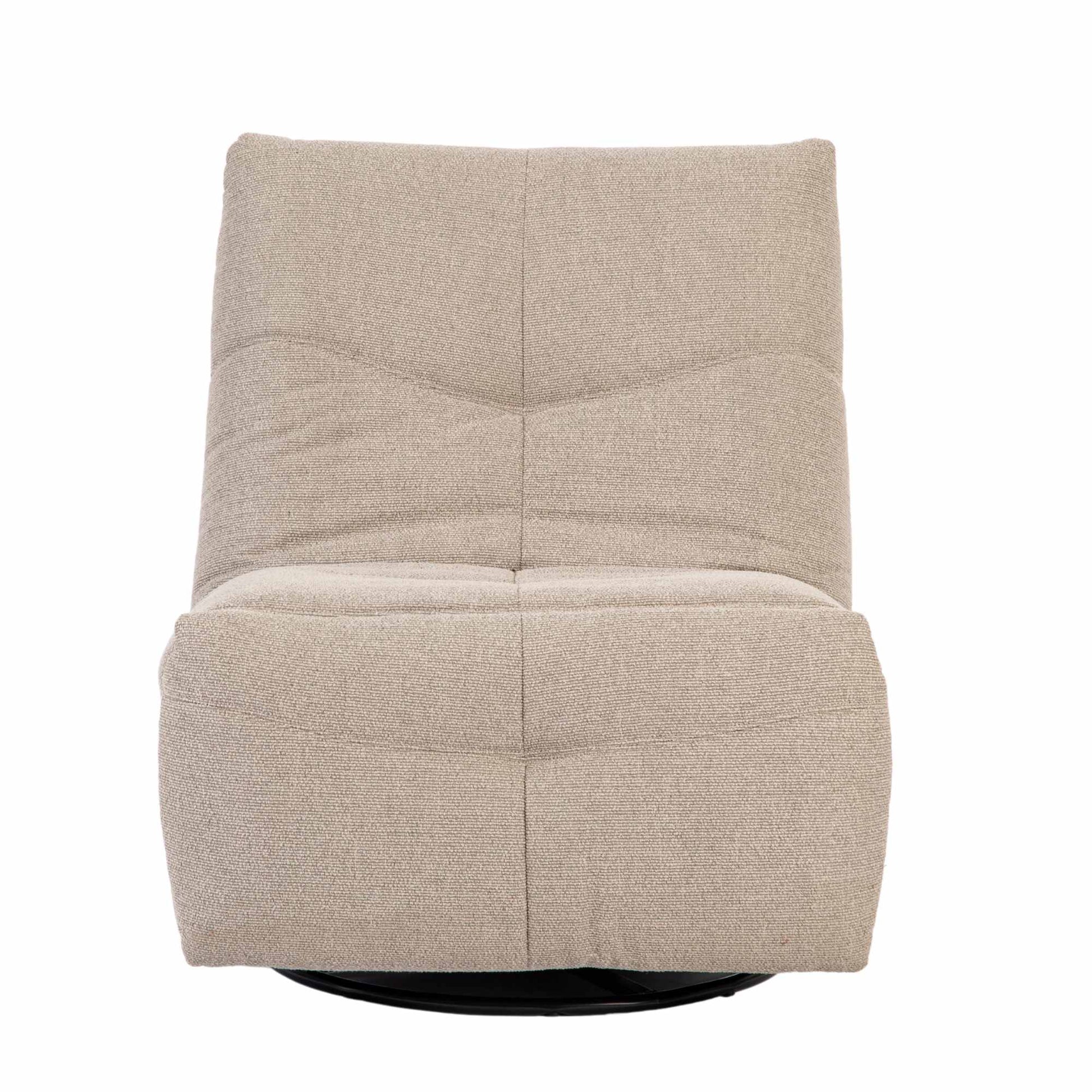 Fauteuil Lazy combineert comfort en functionaliteit dankzij de handmatige relaxfunctie en het slimme glij- en draaimechanisme. Met de zwarte hendel aan de zijkant kun je de rugleuning eenvoudig naar achteren kantelen en tegelijkertijd het voeteneind omhoog brengen. De fauteuil is bovendien draaibaar. De afwerking is stijlvol en eigentijds, met subtiele kruisstiksels op de rugleuning, zitting en voetsteun die het ontwerp een verfijnde uitstraling geven. Verkrijgbaar in de kleuren Light Grey, Dark Grey, Naturel, Taupe en Pink.